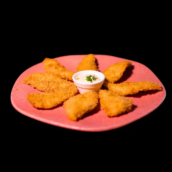 Pedaços finos de tilápia empanadas e fritas - Atenção: não acompanha molho.
