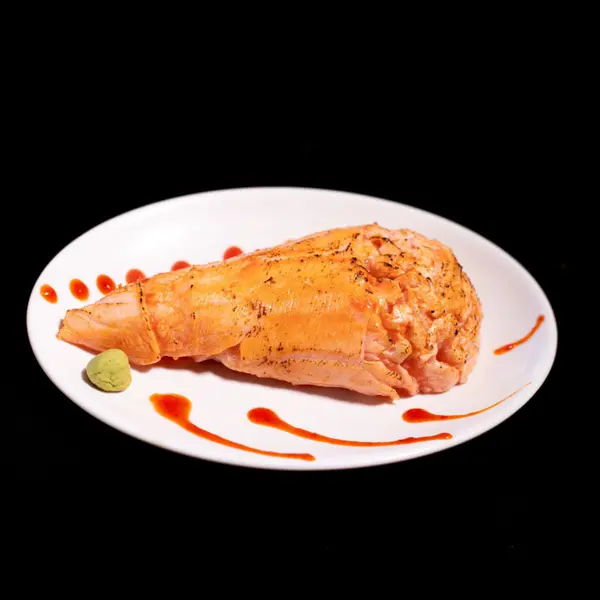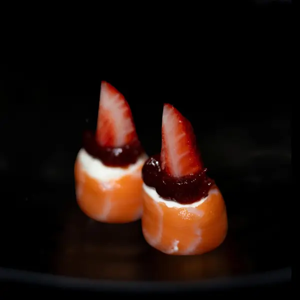 Salmão recheado com cream cheese e morango com chocolate por cima - Atenção: não acompanha molho.