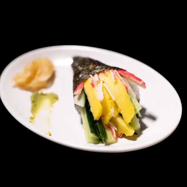 Temaki de manga, kani e pepino - Atenção: não acompanha molho.