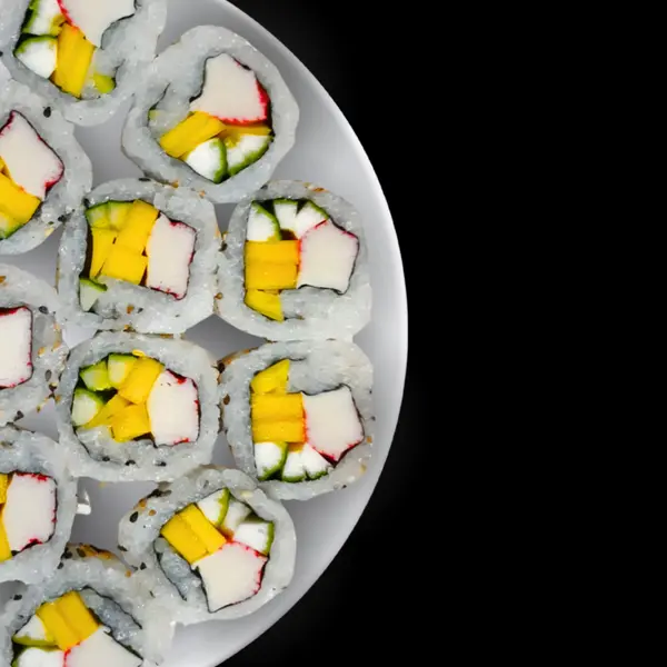 Arroz, manga, pepino e kani-kama - Atenção: não acompanha molho.