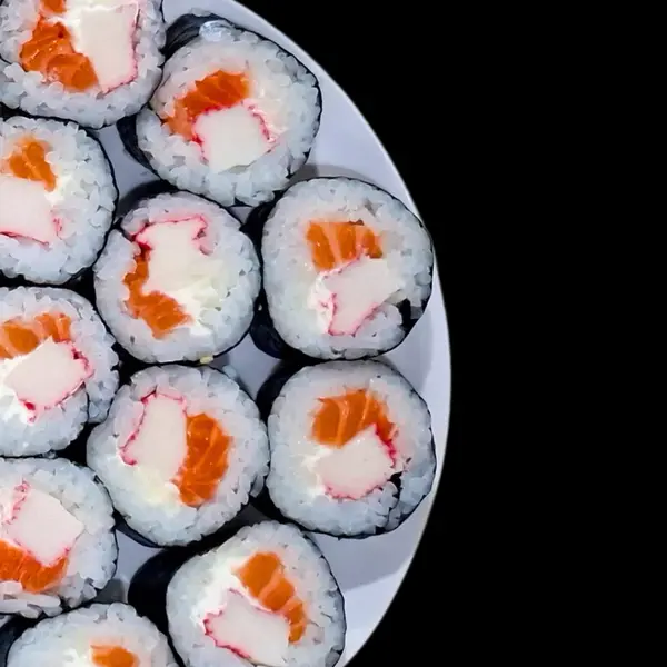 Arroz, salmão, cream cheese e kani-kama - Atenção: não acompanha molhos.