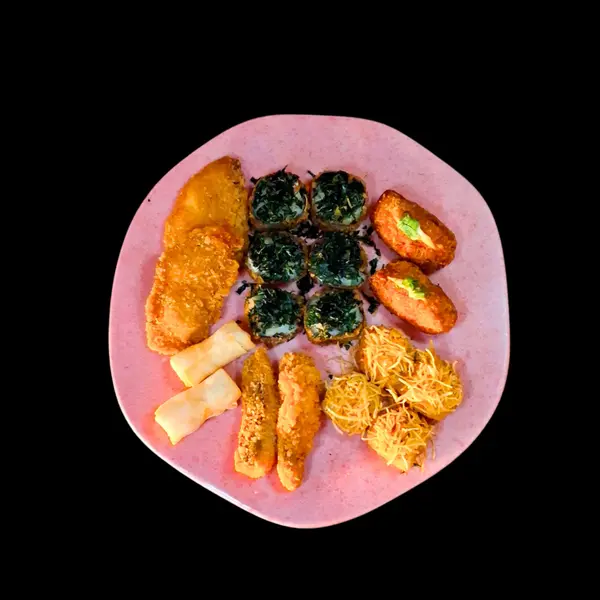 Este item acompanha 1 molho teriyaki/tarê (30ml),1 molho shoyo (30ml) e 2 hashis. 20 sushis variados e 10 peças fritas. - OBS: não trocamos os hots por sushi.